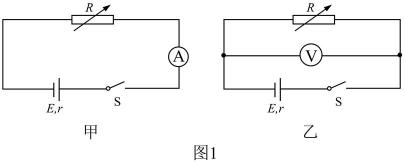 用图1所示的甲、乙两种方法测量某电源的电动势和内电阻(约为1Ω)。其中R为电阻箱,电流表的内电阻约为0.1Ω,电压表的内电阻约为3kΩ。
