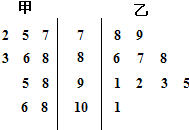 17.从甲、乙两个班级各随机抽取10名同学的数学成绩进行统计分析,两班成绩的茎叶图如图所示,成绩不小于90分为及格。