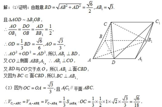 (1)证明:BC⊥AB1;