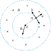 2025年5月1日,全球首个实现“聚变能发电演示”的紧凑型全超导托卡马克核聚变实验装置(BEST)在我国正式启动总装。如图是托卡马克环形容器中磁场截面的简化示意图,两个同心圆围成的环形区域内有垂直纸面向里的匀强磁场,磁感应强度大小为B,内圆半径为R0。在内圆上A点有a、b、c三个粒子均在纸面内运动,并都恰好到达磁场外边界后返回。已知a、b、c带正电且比荷均为
