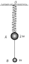 如图,轻质弹簧上端固定,下端悬挂质量为2m的小球A,质量为m的小球B与A用细线相连,整个系统处于静止状态。弹簧劲度系数为k,重力加速度为g。现剪断细线,下列说法正确的是