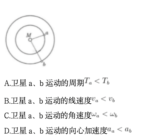 两个卫星a、b,如图所示,绕质量为M的中心天体运动,下列说法正确的是( )