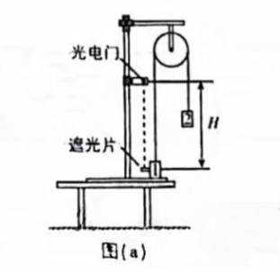 ③将光电门安装在铁架台上,将重锤1压在桌面上,保持系统静止,重锤2离地足够高。用刻度尺测量出遮光片中心到光电门的竖直距离H。