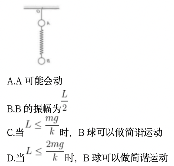 A、B质量均为m,用轻绳将A悬挂于O点,弹簧劲度系数为k,用力将B向下拉伸,使弹簧伸长量为L,以下说法中正确的是( )