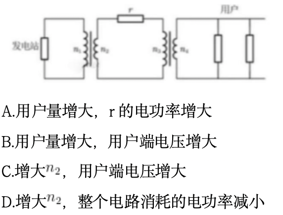 在如图所示的输电线路中,交流发电机的输出电压一定,两变压器均为理想变压器,左侧升压变压器的原、副线圈匝数分别为