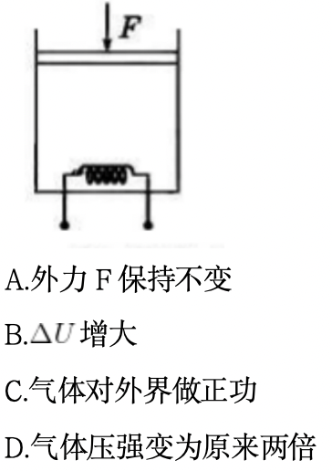 使气体的热力学温度变为原来的两倍,力F使体积减小,下列说法正确的是( )