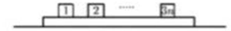 如图,一块足够长的木板放置于水平地面上,木板上有3n个木块(n为大于1的整数),每块滑块重为m,木板重nm,且每个滑块之间距离为L,其中木板与地面之间动摩擦因数为