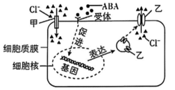 研究小组开展了Cl-胁迫下,添加脱落酸(ABA)对植物根系应激反应的实验,机理如图所示。下列相关叙述错误的有( )