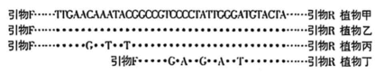 注:“·”表示与植物甲对应位置上相同的碱基:“……”表示省略200个碱基
