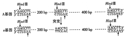 图示人体正常基因A突变为致病基因a及HindⅢ切割位点。AluⅠ限制酶识别序列及切割位点为