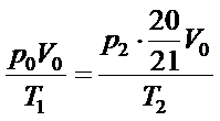 p1=p0、T1=450 K、V1=V2、T2=300 K、V2=20V0/21 ①