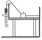 11.如图所示,质量为M的物块A放置在光滑水平桌面上,右侧连接一固定于墙面的水平轻绳,左侧通过一倾斜轻绳跨过光滑定滑轮与一竖直轻弹簧相连。现将质量为m的钩码B挂于弹簧下端,当弹簧处于原长时,将B由静止释放,当B下降到最低点时(未着地),A对水平桌面的压力刚好为零。轻绳不可伸长,弹簧始终在弹性限度内,物块A始终处于静止状态。以下判断正确的是
