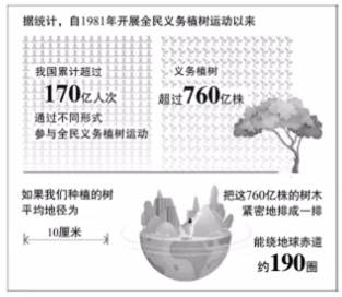 材料一 1981年,全国人大通过了《关于开展全民义务植树运动的决议》,植树造林、绿化祖国成为中国每一位适龄公民的法定义务。2019年有国际科研机构发现,世界越来越绿了,中国是促进这一改变的重要贡献者之一,全球从2000年到2017年新增的绿化面积约四分之一来自中国。