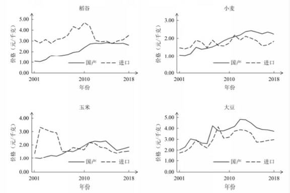 ①2001~2018年,国产稻谷的价格竞争优势总体上升