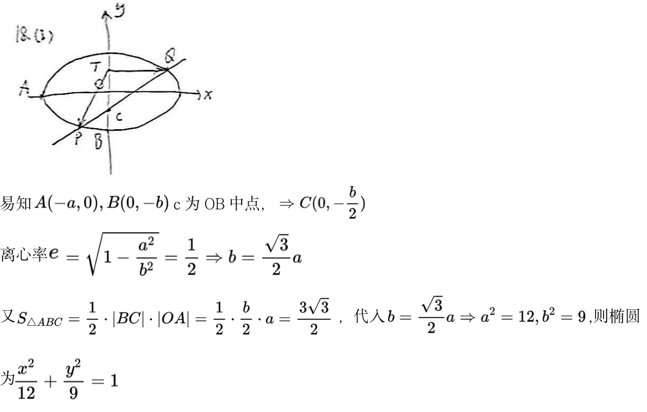 本题主要考查了椭圆的基本性质、椭圆方程、离心率、顶点坐标等,还涉及到三角形面积的计算,以及直线与椭圆的位置关系,向量的数量积等知识点。