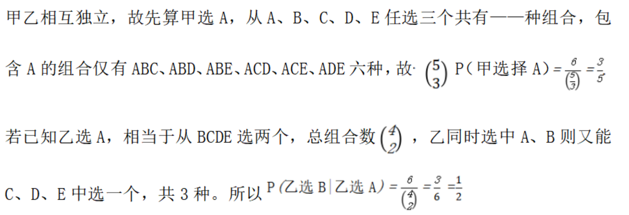 A、B、C、D、E五种活动,甲、乙都要选择三个活动参加.(1)甲选到A的概率为______;已知乙选了A活动,他再选择B活动的概率为______.