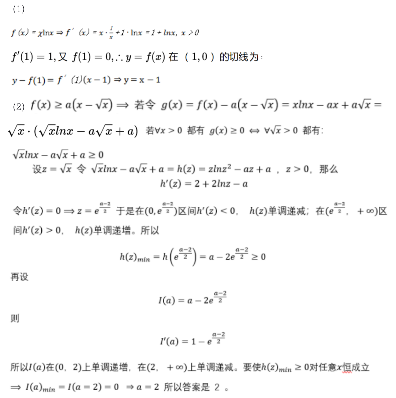 本题主要考查了导数的几何意义、利用导数研究函数的单调性和最值、不等式恒成立问题以及导数在证明不等式中的应用等知识点。
