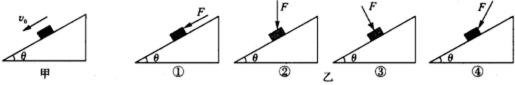 10.如图甲所示,一物块在斜面上恰能以速度v0匀速下滑,斜面静止不动,若在物块上再施加如图乙所示的作用力F(其中②图中F竖直向下,③图中F垂直斜面向下),斜面仍静止不动,则加力后在物块下滑的过程中( )