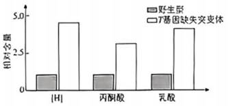 玉米T蛋白可影响线粒体内与呼吸作用相关的多种酶、T蛋白缺失还会造成线粒体内膜受损。针对T基因缺失突变体和野生型玉米胚乳,研究者检测了其线粒体中有氧呼吸中间产物和细胞质基质中无氧呼吸产物乳酸的含量,结果如图。下列分析正确的是( )