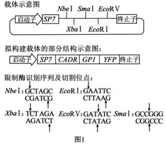 (2)载体中可用的酶切位点信息和拟构建载体的部分结构如图1所示。在将CADR、GP1和YFP基因逐个构建到载体时,为避免错误连接,需向以上三个基因的两端分别添加限制酶识别序列,其中GPl两端应添加__________(填两种限制酶)的识别序列。用DNA连接酶连接时,可催化载体和目的基因之间形成__________键。