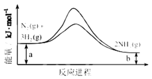 (3)合成氨反应常使用铁触媒提高反应速率。右图为有、无铁触媒时,反应的能量变化示意图。写出该反应的热化学方程式_________。从能量角度分析,铁触媒的作用是________________________。