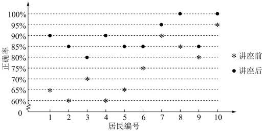 某社区通过公益讲座以普及社区居民的垃圾分类知识.为了解讲座效果,随机抽取10位社区居民,让他们在讲座前和讲座后各回答一份垃圾分类知识问卷,这10位社区居民在讲座前和讲座后问卷答题的正确率如下图: