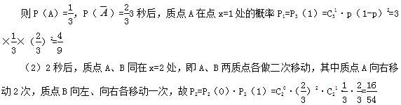 (2)求2秒后,质点A、B同时在x=2处的概率。
