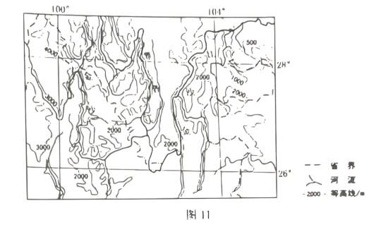 (2)断裂处岩石破碎,易被侵蚀。(2分)断裂处地势较低,水向低处流,遭受流水侵蚀。(2分)