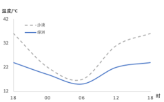 对我国甘肃某绿洲观测发现,在天气稳定的状态下,会季节性出现绿洲地表温度全天低于周边沙漠的现象。图3呈现该绿洲和和附近沙漠某时间段内地表温度的变化。据此完成6~8题。