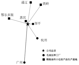 (2)分析该公司在杭州、广州建设精炼油和小包装产品生产基地的主要原因。(8分)