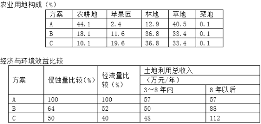 21.下表是根据土地利用结构调整的需要,科研人员对某生态脆弱区的农业土地利用拟定的三种方案。该地最有可能位于( )