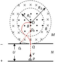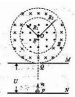 23.如图所示,M、N为加速电场的两极板,M板中心有一小孔Q,其正上方有一半径为