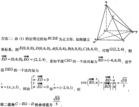 (II)设点G在棱AC上,且CG=2GA,试求二面角C一EG—D的余弦值。