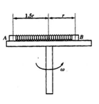 因为A、B离转台中心的距离分别为1.5r、r,已知弹簧的原长为1.5r,所以弹簧伸长量为