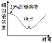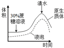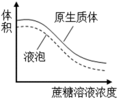 探究植物细胞的吸水和失水实验是高中学生常做的实验。某同学用紫色洋葱鳞片叶外表皮为材料进行实验,探究蔗糖溶液,清水处理外表皮后,外表皮细胞原生质体和液泡的体积及细胞液浓度的变化。图中所提到的原生质体是指植物细胞不包括细胞壁的部分。下列示意图中能够正确表示实验结果的是( )