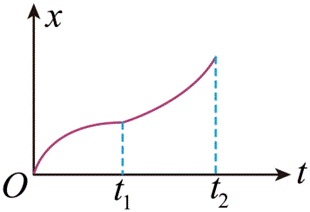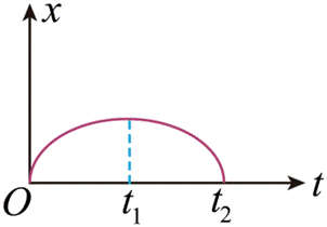 一小车沿直线运动,从t = 0开始由静止匀加速至t = t1时刻,此后做匀减速运动,到t = t2时刻速度降为零。在下列小车位移x与时间t的关系曲线中,可能正确的是( )