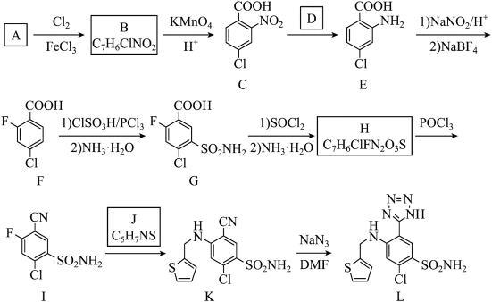 阿佐塞米(化合物L)是一种可用于治疗心脏、肝脏和肾脏病引起的水肿的药物。L的一种合成路线如下(部分试剂和条件略去)。