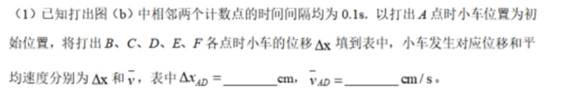 某同学利用如图(a)所示的实验装置探究物体做直线运动时平均速度与时间的关系。让小车左端和纸带相连。右端用细绳跨过定滑轮和钩码相连。钩码下落,带动小车运动,打点计时器打出纸带。某次实验得到的纸带和相关数据如图(b)所示。