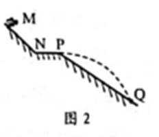 图2是滑雪道的示意图。可视为质点的运动员从斜坡上的M点由静止自由滑下,经过水平NP段后飞入空中,在Q点落地。不计运动员经过N点的机械能损失,不计摩擦力和空气阻力。下列能表示该过程运动员速度大小v或加速度大小a随时间t变化的图像是( )