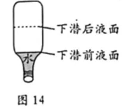 (2)玻璃瓶可作为测量水深的简易装置。如图14所示,潜水员在水面上将
