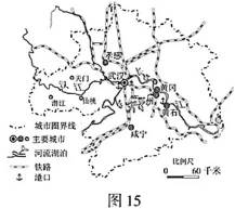 材料一 湖北省黄石市是武汉都市圈的副中心城市,有“青铜古都”“钢铁摇篮”“水泥故乡”之称。图15为“黄石市区位示意图”。