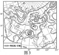 图3为“亚欧大陆某时刻海平面等压线分布示意图”。读图回答5~6题。