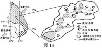 斯里兰卡农民依托小流域(平均面积20km2)建设的梯级蓄水池农田系统,被列为“全球重要农业文化遗产”。图13为“梯级蓄水池农田系统主要分布地区及其模式示意图”。据此回答25~26题。