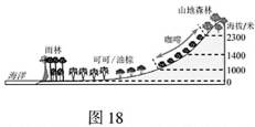材料一 咖啡原产于非洲,现在我国云南、四川、海南、福建和台湾等地均有种植,但90%以上种植面积集中于云南。图18为“咖啡原产地非洲某地的咖啡种植分布示意图”。