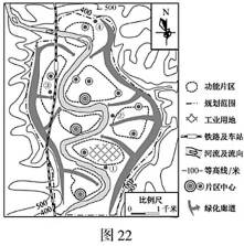 31.[城乡规划]图22为“某城市中心城区空间结构规划示意图”。回答下列问题。(10分)