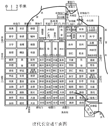 城市布局不同点:唐代长安城实行坊市制,布局方正、讲究对称、功能分明、形制统一;君士坦丁堡的城市布局沿主要干道和城墙分布,呈现“Y”形。