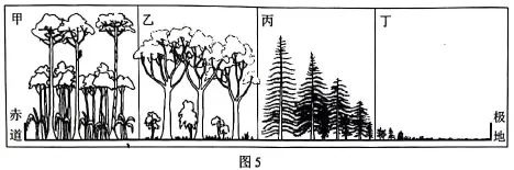 图5示意从赤道到极地的典型植被景观类型。据此完成13~14题。