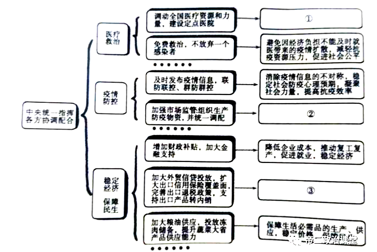 20.(8分)抗击新冠肺炎疫情的中国行动新观肺炎疫情是新中国成立以来发生的传播速度最快、感染范围最广、防控难度最大的一次重大突发公共卫生事件,对中国是一次危机,也是一次大考。运用《经济生活》知识,完成一下抗疫举措的示意图。