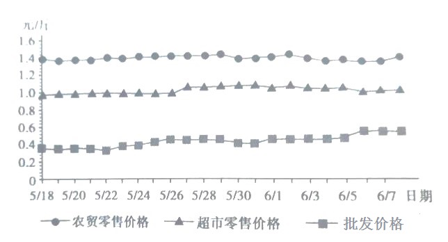 农贸零售价和超市零售价差异的经济原因:超市直接从产地供应,流通环节少,农贸市场要经过产地到批发商再到零售商等诸多环节,因而超市价格比农贸市场更低。