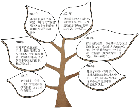 2015年:推出智能跑鞋,该跑鞋可全方位监控跑姿状态;营业收入突破100亿元,企业将此归结于“一直秉承工匠精神,努力做好每一件衣服,每一双鞋”。